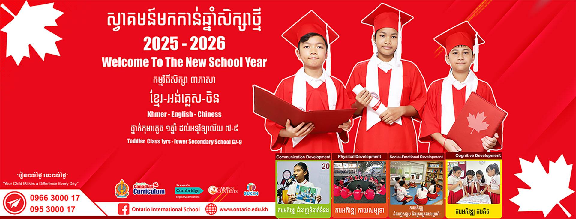 Ontario International School follows the Canadian curriculum for the international program and the Cambodian curriculum for the national program. The Canadian curriculum is conducted in English language, while the Cambodian curriculum is conducted in Khmer language. Ontario also provides a Chinese language training course that is taught by qualified Chinese native teachers.